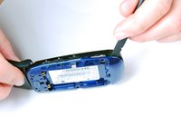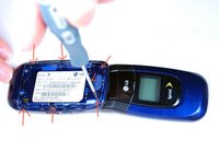 Insert the flat end of the spudger in-between the black and blue phone casing on the side of the phone and split the the blue and black apart. Work your way around the perimeter of the cover, loosening all corners.