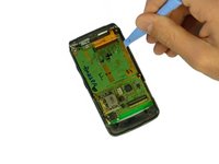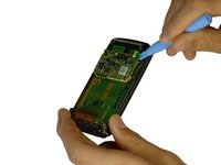 • Use the spudger to lift the motherboard from the phone.