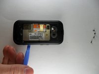 Remove 5 screws, 1 from each corner of the phone and 1 from the center-right of the phone.