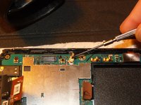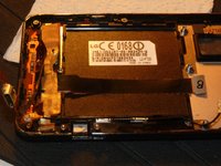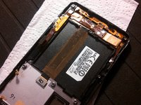 Once you detached the gold/blue foil, remove the flex cable that lies beneath the black foil that covers the battery compartment. In the first picture I marked red lines show where the flex cable lies.