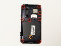 Remove 9 screws from the phone. The locations of these screws are circled in the picture.