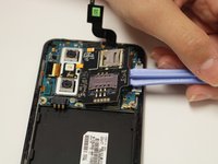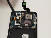 Using a spudger or plastic opening tool, gently disconnect the ribbon cable attached to the black SIM card board.
