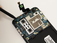 Using a spudger or plastic opening tool, gently disconnect the ribbon cable attached to the black SIM card board.