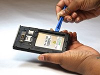 Remove the 12 screws (with the phillips head 000) around frame and near sim and sd cards.