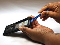 • Insert a plastic opening tool between the seams of the device and pry the back cover away from the phone.
