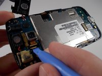 Use a plastic opening tool to remove the small black and yellow piece that reads Y3114C.