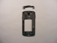 On the front side of the phone, push down on the top plastic shield to loosen it, and remove the shield using the plastic opening tool .