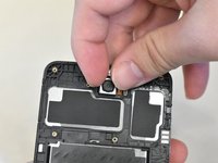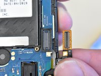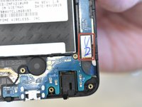 On the bottom right of the phone, locate a cable that holds the motherboard to the phone.