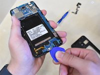 Pry from the top and bottom of the screen with the (refer to photo) opening pick to release the tabs holding the motherboard to the phone.