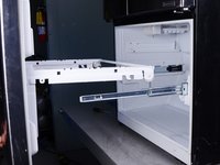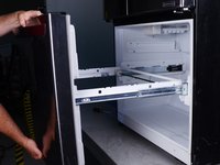 Pull the lower left drawer slide slightly toward you to release the locking tab at the rear.