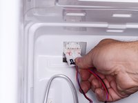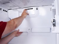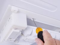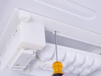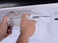 Use a Phillips screwdriver to remove the screws securing the ice maker to the top of the freezer compartment.