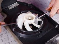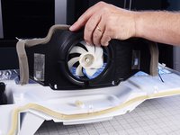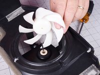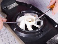 Insert two flat-head screwdrivers through the top of the fan opening in the fan assembly.