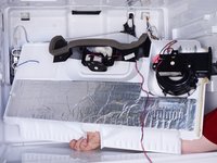 Use a Philips screwdriver to remove the screws securing the evaporator fan assembly to the evaporator cover.