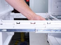 Pull the upper left drawer slide slightly towards you to release the locking tab at the rear.