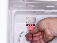 Squeeze the ice maker connector to release it and pull it straight out to disconnect it.