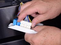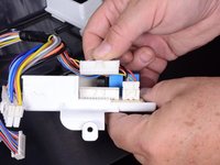 Squeeze the two multiple wire connectors and pull them straight off to disconnect them from the display board.