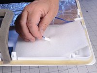 On the rear of the evaporator cover, peel up the insulation pad covering the thermistor.