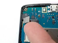 Detach the screen connector from the motherboard by putting your thumb underneath it and lifting up.