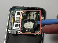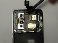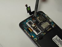 Utilize a spudger or plastic opening tool and gently disconnect the ribbon cable that is attached to the black micro-SIM card board.