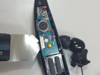 Using a guitar pick or any opening tool, open the frame of the headset.