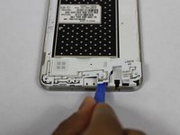Using a plastic opening tool, remove the antenna extender from the mid-frame.
