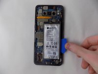 Remove the battery by prying the underside of the battery and pulling upwards with the opening pick (shown in image 2).