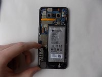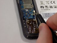 Using the metal spudger, pull up from below the motherboard at the top of the phone and near the battery to remove the motherboard from the phone.