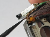 Use the spudger to carefully lift up the small latch that holds the gold strip onto the logic board.