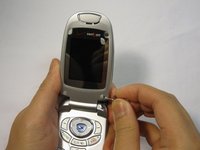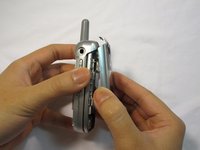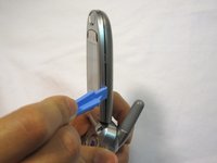 Insert the opening tool in the seam of the top portion of the flip phone.