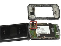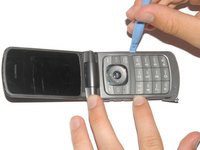 Remove the (2) rubber screw covers located near the hinge of the phone using tweezers or a thumb tack.