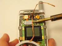 Locate the solder on the side of the metal plate on the top half of the phone.