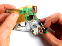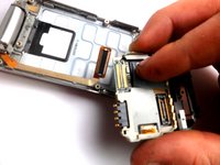 First, pull back the tape covering the connection between the motherboard and the ribbon cable.