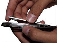 Insert a safe prying tool between the slot between the front screen housing and the battery housing to remove the battery housing.