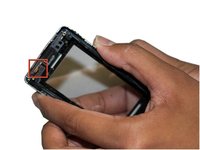 In the top right corner of the housing use a pry tool to disconnect the touch screen digitizer connector from the housing.