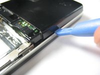 Remove the battery by placing your fingernail or an opening tool at the bottom edge of the battery and lift it out.