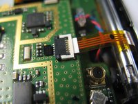 Gently lift the ZIF connector (black tab) holding the ribbon cable in place. When it is in the upright position, remove the cable from the back side.
