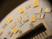 On the LED PCB, you can see the white and colored LEDs. The PCB is a thermally-conductive aluminum material.