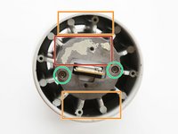 • Note the two Phillips-head screws in the central portion of the metal case (marked in green circles). We remove these in the next steps.