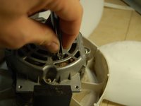Unscrew the screws attaching the plastic frame to the motor.