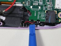 Use the small plastic opening tool to gently lift under the side microphone's black wire to remove the microphone from its slot.