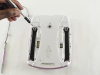 Use a small plastic opening tool to begin separating the colored front cover from the white rear cover of the device.