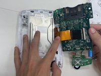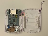 Separate the motherboard from the back side of the device by detaching the black and red wire connection from the back cover.