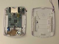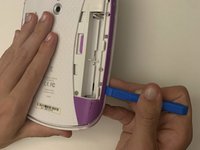 Use a small plastic opening tool to separate the colored front cover from the white rear cover of the device.