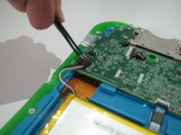 Carefully remove the battery from the LeapPad, use the plastic spudger to gain leverage, if needed.