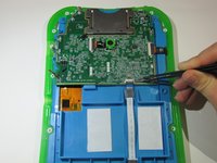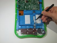 Begin by removing the blue rim along the edge of the device. It runs along the green silicone lining.