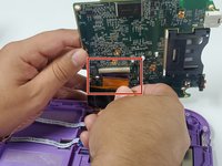 Remove the purple case, exposing the motherboard and battery.