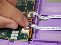 Flip up the locking clip on the ribbon cable connector to release the cable.