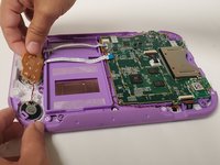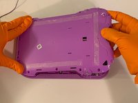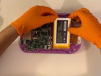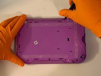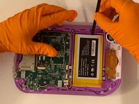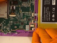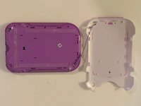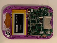 Remove the purple case, exposing the motherboard and battery.