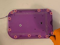 Using the iFixit opening tool, pry off the purple and white child-proof casing to expose the twelve screws.
