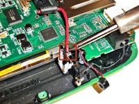 Desolder the through hole-components in power plugs on both sides of the device where the batteries were once connected.